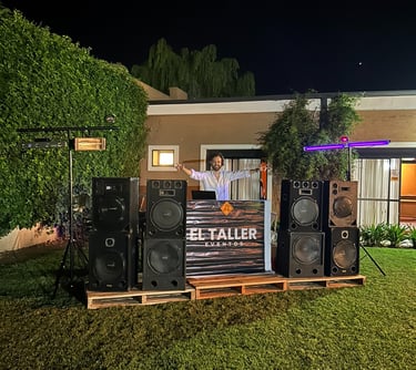 Nuestra fortaleza está en lo que nos hace únicos. Nuestro equipo combina lo mejor de cada área: atención al cliente, DJ e ingeniería en sonido. Cada uno aporta su experiencia y pasión para crear eventos inolvidables, cuidando cada detalle, desde el primer contacto hasta el último baile. En Taller Eventos, trabajamos juntos para que tu fiesta sea única.